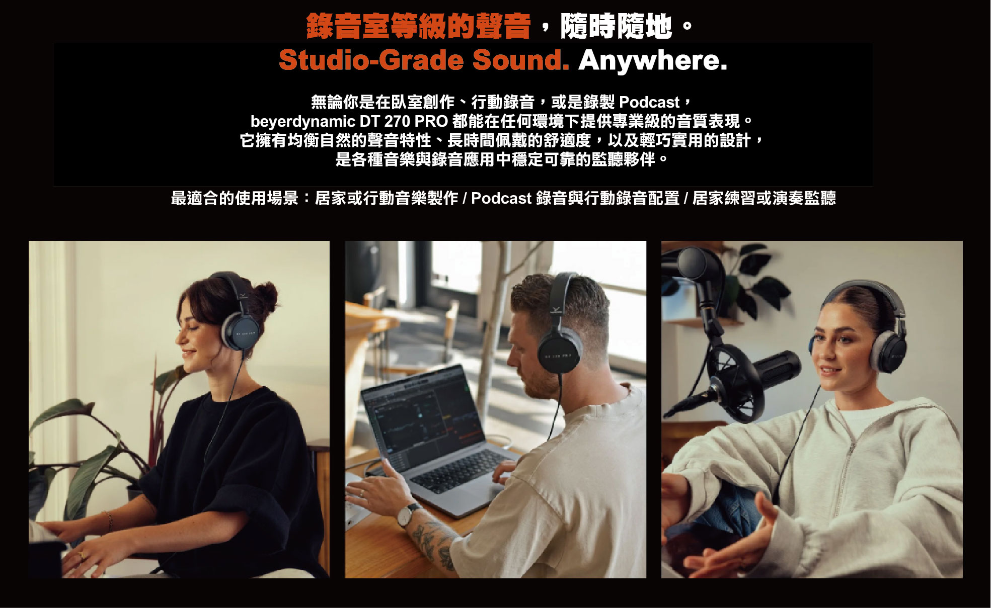 輕巧封閉式包耳設計,適合錄音與監聽使用