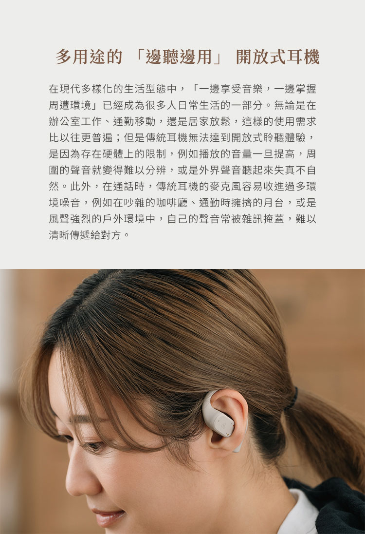 多用途的 「邊聽邊用」 開放式耳機