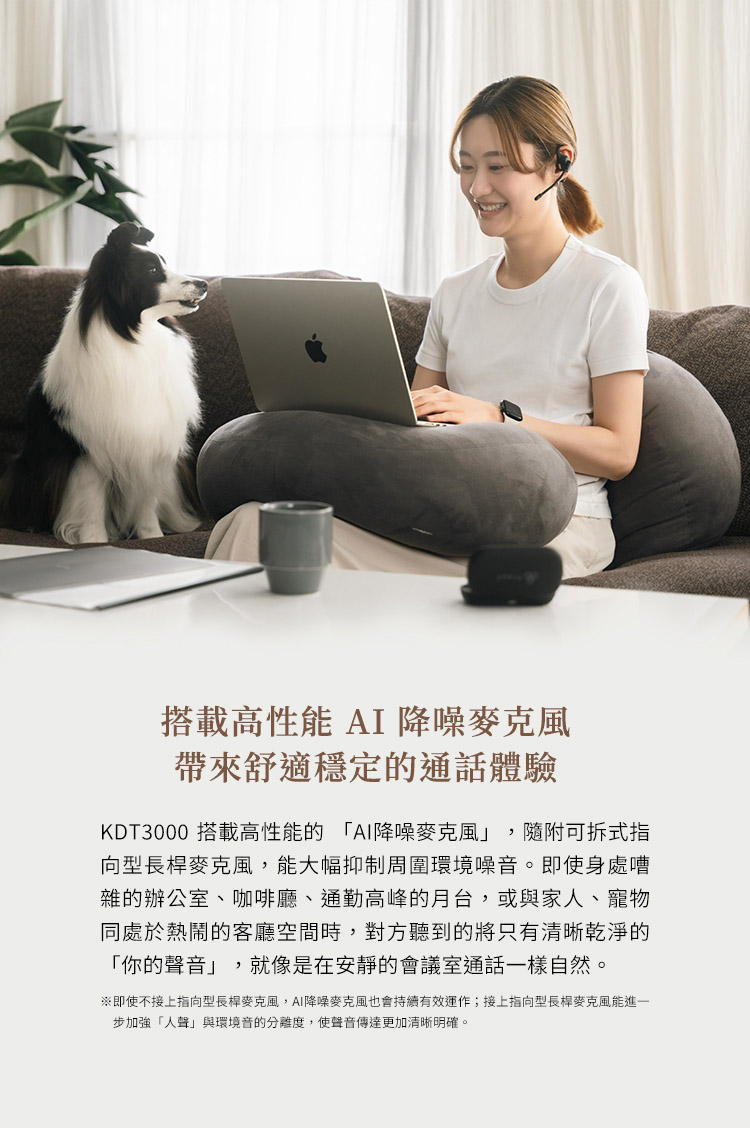 搭載高性能 AI 降噪麥克風,帶來舒適穩定的通話體驗