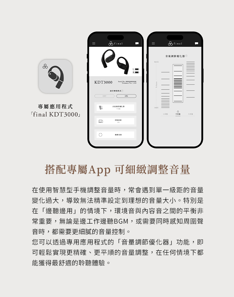搭配專屬App,可細緻調整音量與設定