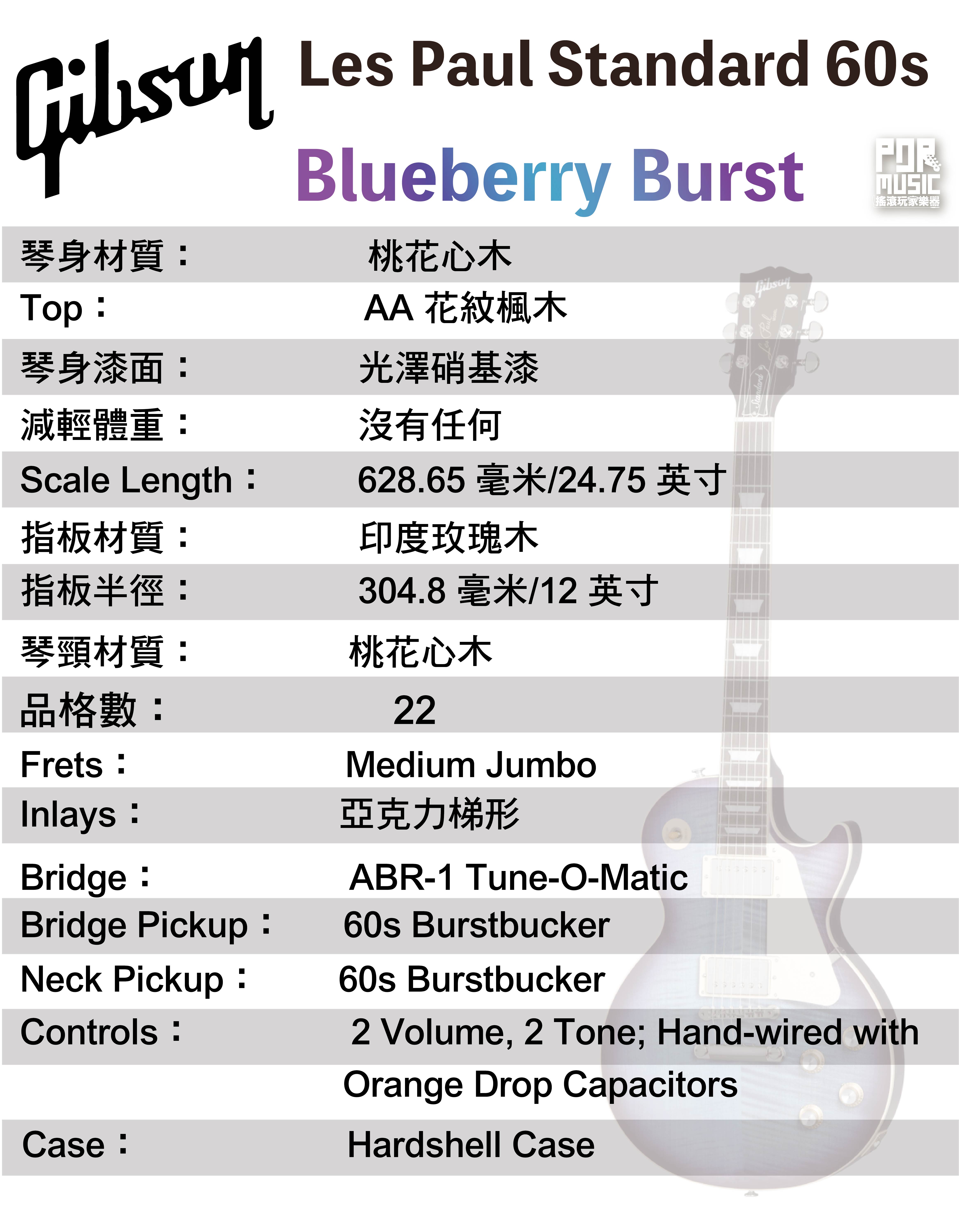Les Paul™ 標準 60 年代花紋面板回歸經典設計,使其具有相關性、演奏性和喜愛性 - 塑造跨世代和音樂流派的聲音。它向 Gibson 的創新黃金時代致敬,讓真實性重新煥發活力。 Les Paul Standard 60 年代花紋面板採用實心桃花心木琴體,在新型令人頭暈的半透明定制彩色硝基漆飾面下方可見 AA 花紋楓木面板。桃花心木琴頸具有 60 年代風格的 SlimTaper™ 輪廓和帶有梯形鑲嵌的紅木指板。 Les Paul Standard 60s 花紋面板配備了經典的ABR-1 Tune-O-Matic™ 琴橋、鋁製Stop Bar 拉弦板、Grover® Rotomatic® “腎型”調音器以及帶有銀色反光鏡的金色禮帽旋鈕。 60 年代的 Burstbucker™ 拾音器裝有 Alnico 5 磁鐵,並連接到音頻錐度電位器和 Orange Drop® 電容器。還包括一個硬殼盒。