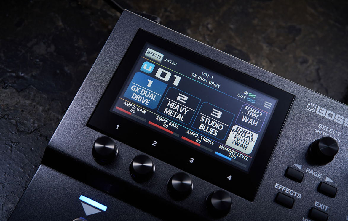 GX-10 配備的彩色觸控螢幕和四個動態參數旋鈕,可快速實現音色製作。每個內存記憶可分配多達兩個音箱模擬和 15 種效果器,可打造串聯或並聯效果器佈線,並可透過觸控螢幕拖拉模組,輕鬆調整效果器連接順序。Send/return 效果器環路,可讓您將常用的外接單顆效果器整合到系統中。透過 BOSS Tone Studio,帶您更進一部深入操作,讓您在電腦上編輯音色、載入 IR 檔,或者運用藍牙轉接器(另售)和行動版本 App 無線調音色。