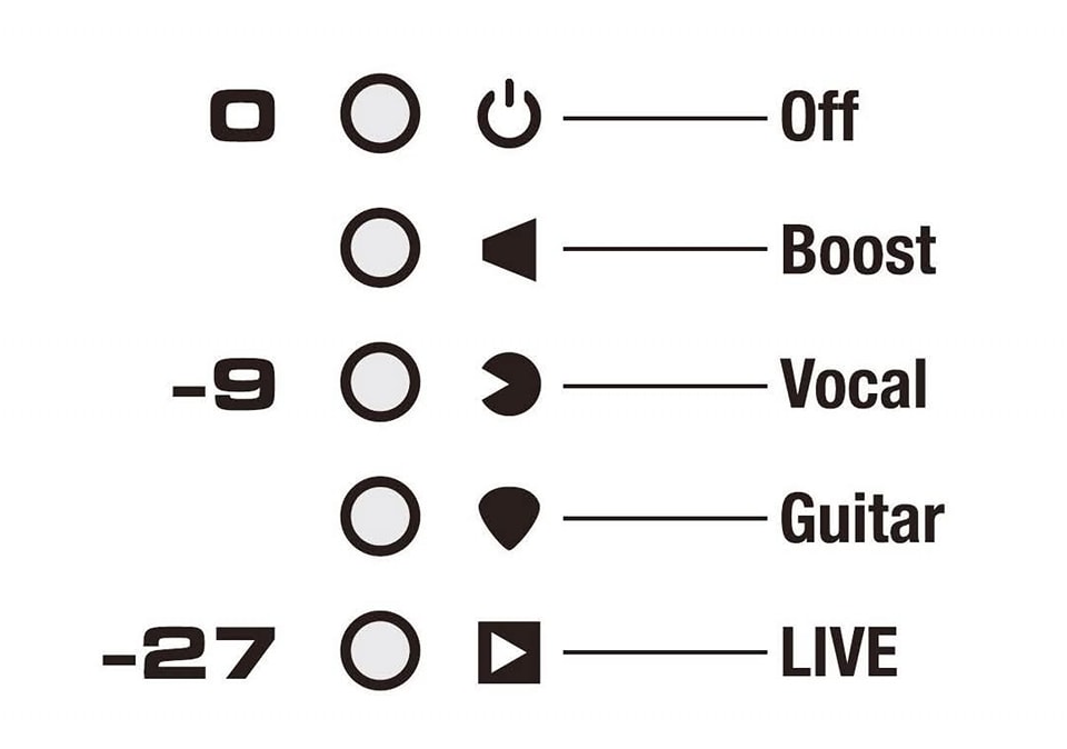 每個輸入通道都有內建的升壓模式和 3 種不同的壓縮模式。