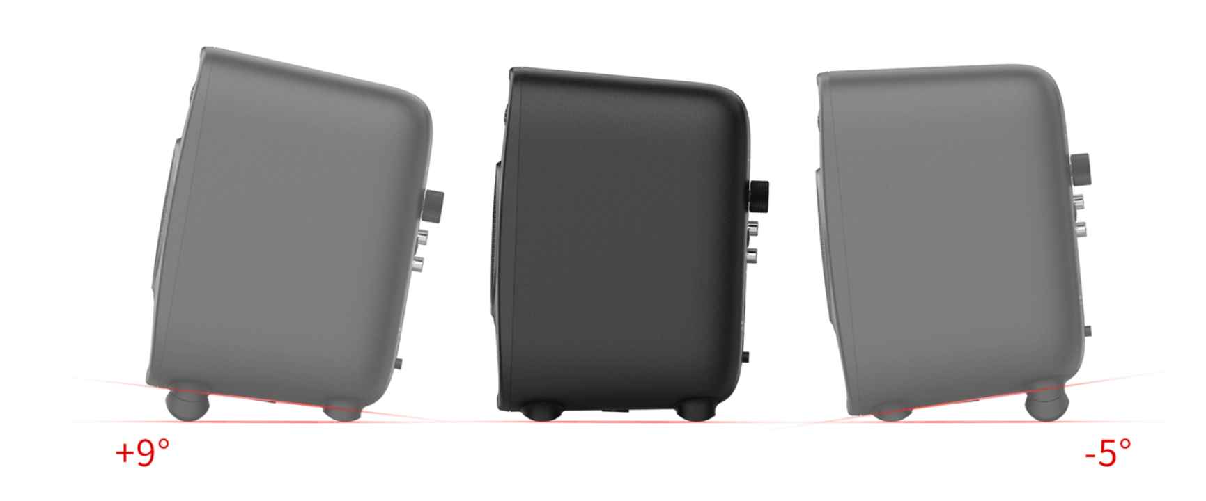 AXON 3 配備兩個磁吸腳墊,支援+9° 和-5° 的角度調節,精準引導聲音直達耳朵,同時有效隔離桌面震動。底部內建3/8 吋螺母,可穩固安裝於任何麥克風架或音箱支架,提供靈活擺放,幫助獲得更精準的聲音表現。