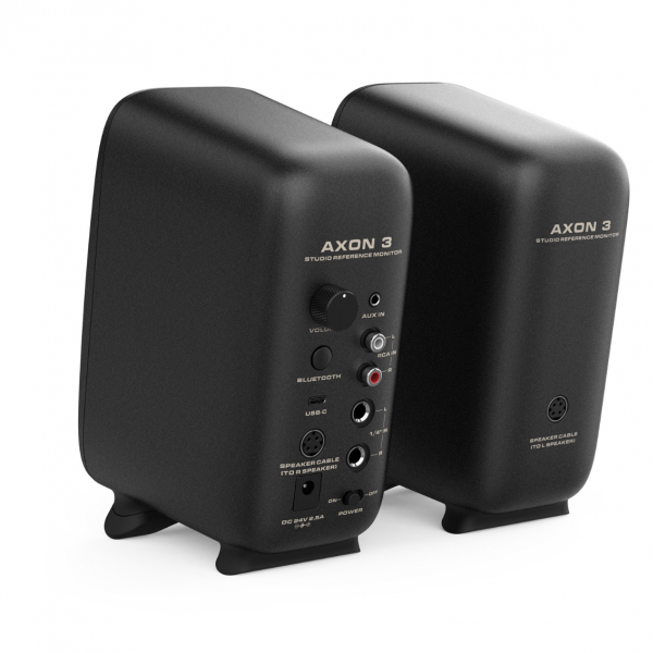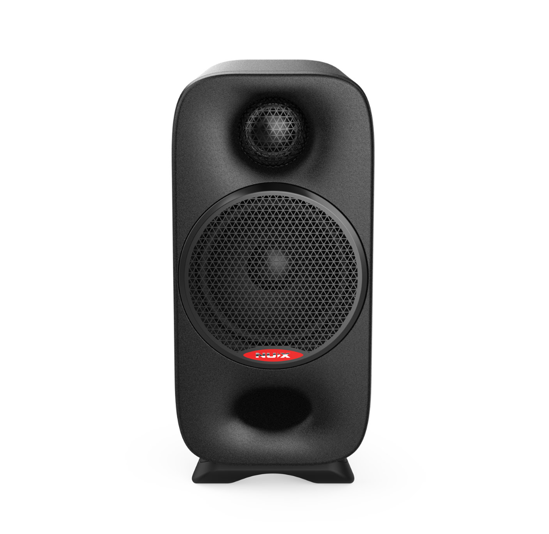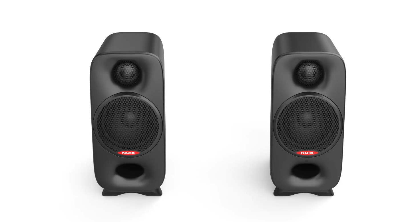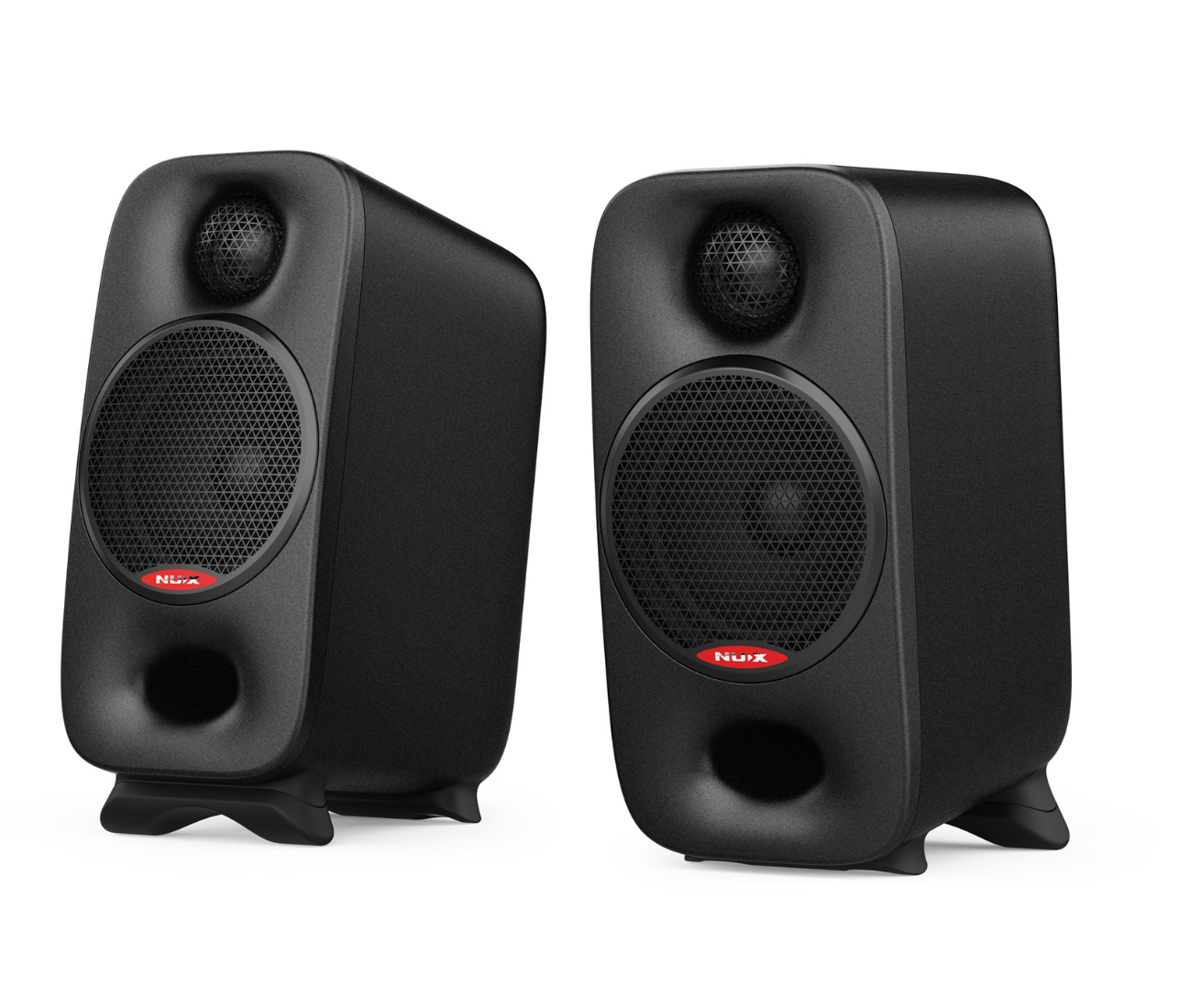 NUX AXON 3 是一款專業級「超便攜」主動式參考監聽喇叭,採用雙磁性腳墊設計,可調整角度,用於精準導音並減少桌面震動。擁有 90 W RMS bi-amp(雙功放)設計與優異 DSP 處理,能呈現平直、精準的聲音,頻率延伸至低至 55 Hz,搭配多種輸入/連接方式,是錄音、混音、流媒體播音的理想選擇