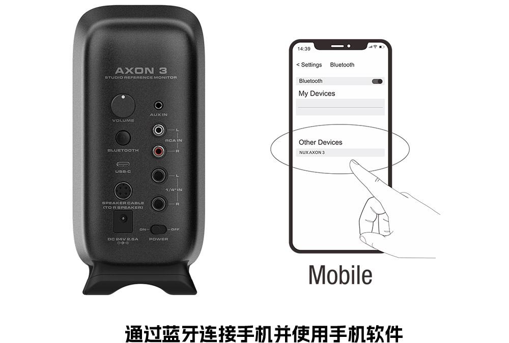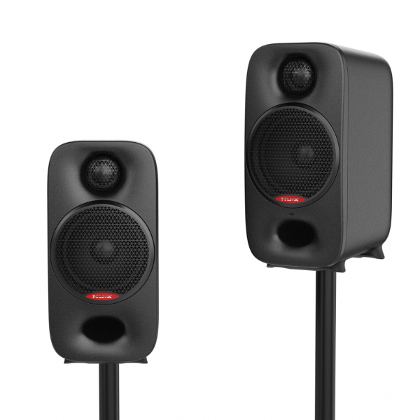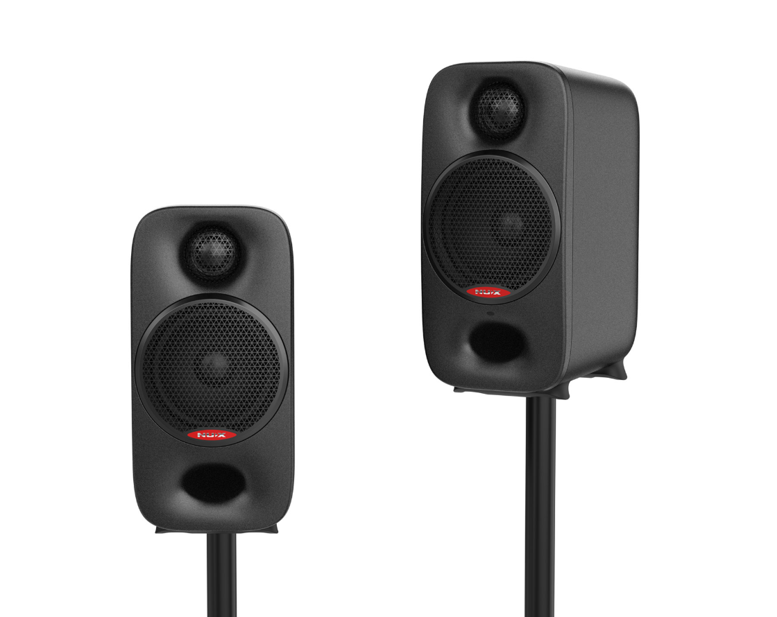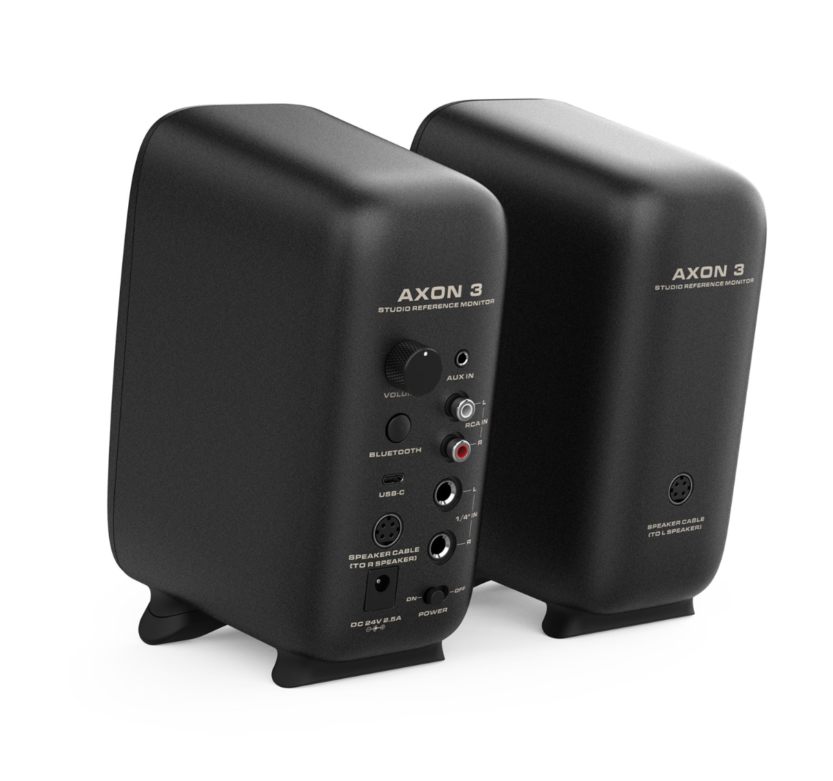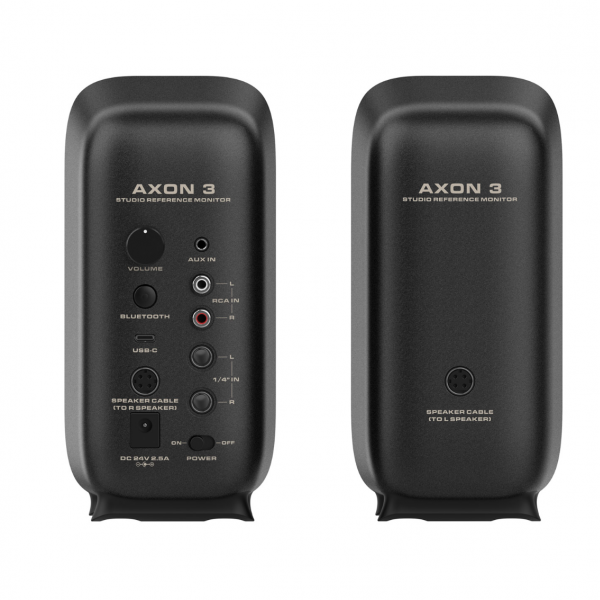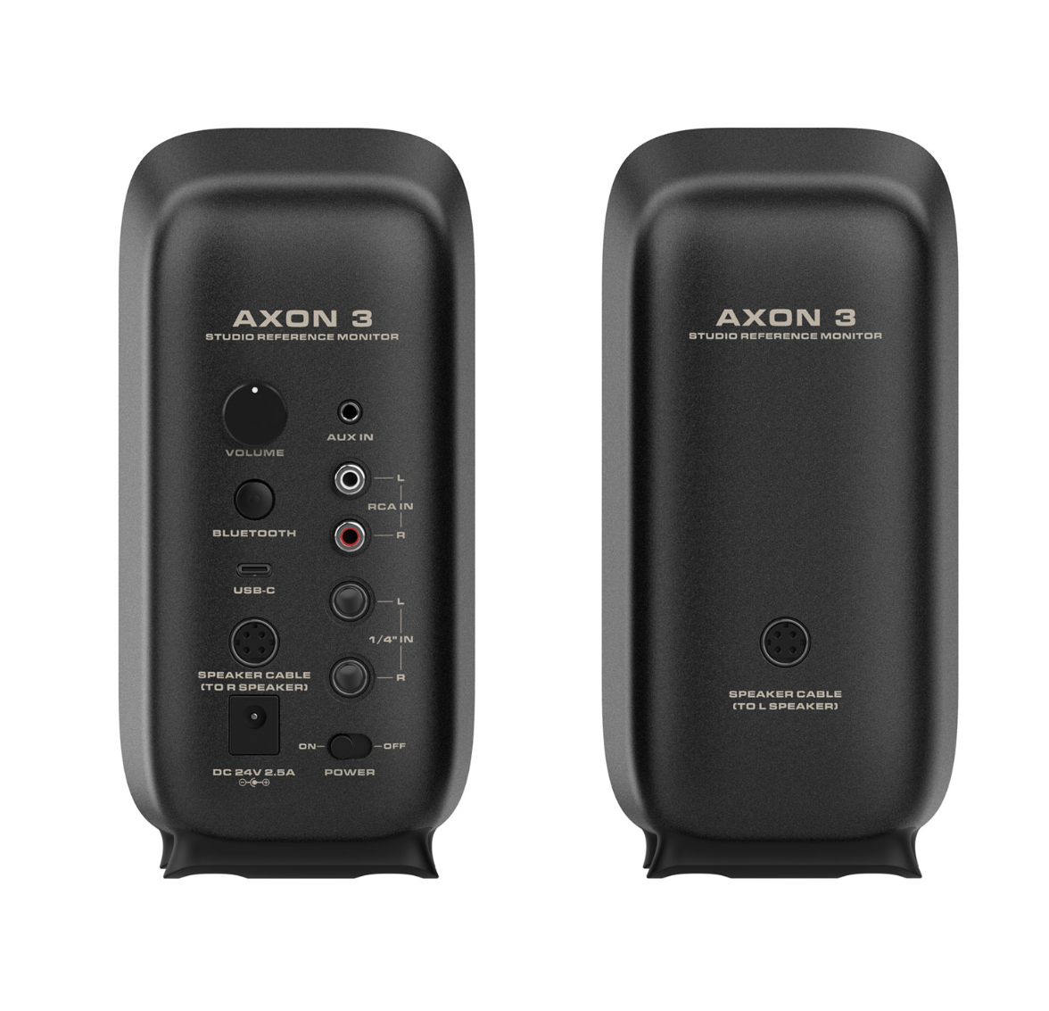 NUX AXON 3 是一款專業級「超便攜」主動式參考監聽喇叭,採用雙磁性腳墊設計,可調整角度,用於精準導音並減少桌面震動。擁有 90 W RMS bi-amp(雙功放)設計與優異 DSP 處理,能呈現平直、精準的聲音,頻率延伸至低至 55 Hz,搭配多種輸入/連接方式,是錄音、混音、流媒體播音的理想選擇