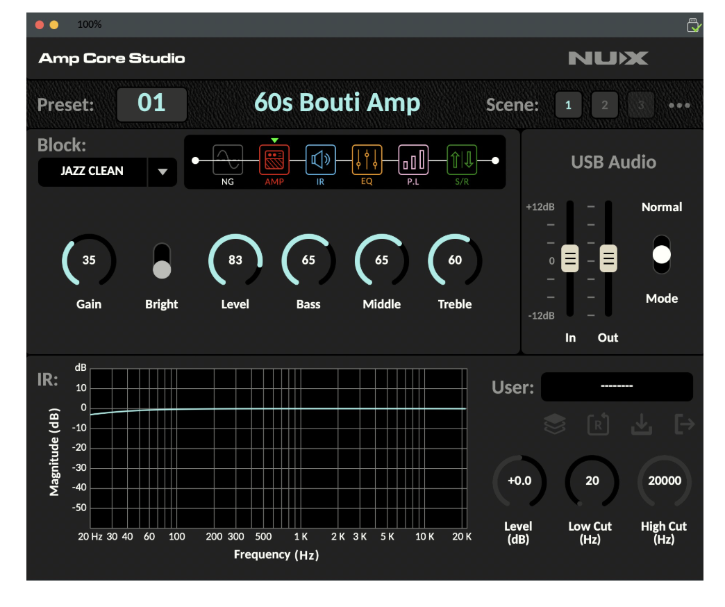 - 3 種場景模式可在不同的擴大機音調之間即時無縫切換。
