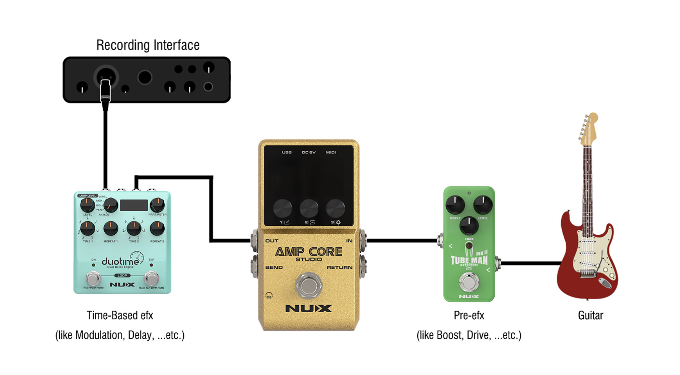 - 發送/返回循環可輕鬆整合您最喜歡的效果踏板。