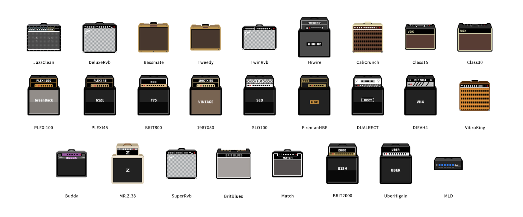 AMP CORE STUDIO 擁有 26 個世界一流的吉他擴大器模型,包括 Tweed、Twin 和 Bassman 等 F 型擴大機; M 型擴大機,如 Plexi 和 JCM;現代高增益放大器,如 HBE、VH4 和整流器;以及 DC30、Maz 38 和 AC30 等精品擴大機。標誌性的 TSAC-HD(白盒演算法)放大器建模為您提供逼真的擴大機感覺和快速的可玩性響應。
