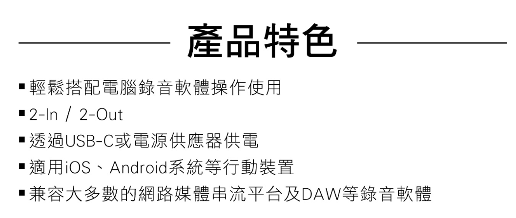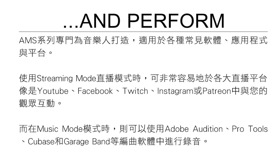 ● 兼容大多數的網路媒體串流平台及DAW等錄音軟體
