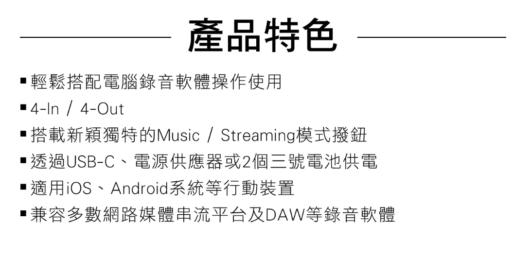 ● 兼容大多數的網路媒體串流平台及DAW等錄音軟體