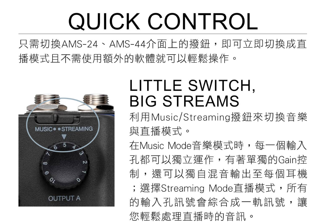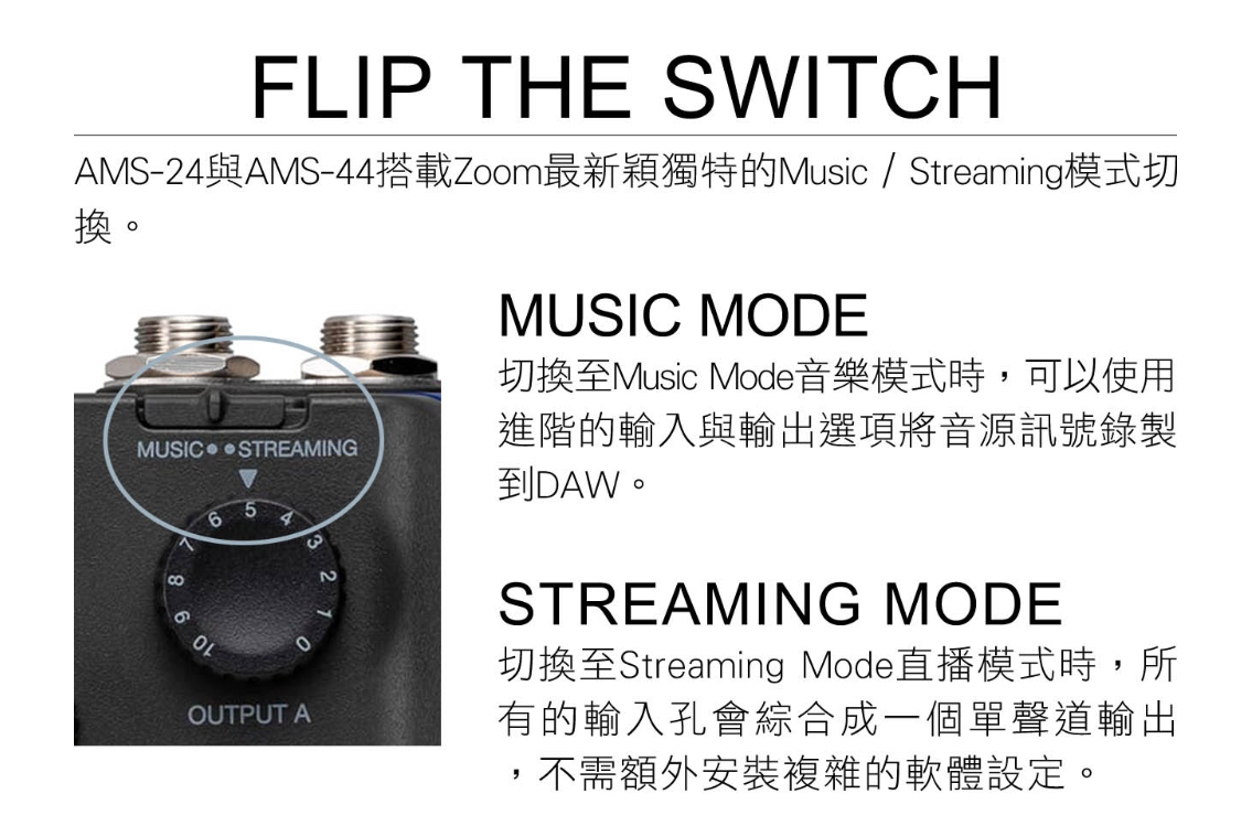 ● 搭載新穎獨特的Music / Streaming模式撥鈕