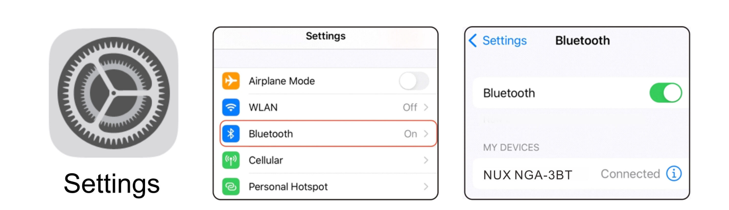 操作:您可以從手機上的「設定」選項連接藍牙音頻,以透過MIGHTY LITE BT MKII播放音訊。點選手機上的「設定」。進入“藍牙”,並選擇“MIGHTY LITE BT MKII ”,當您連接MIGHTY LITE BT MKII的藍牙音訊時,您將聽到連接提示音。
