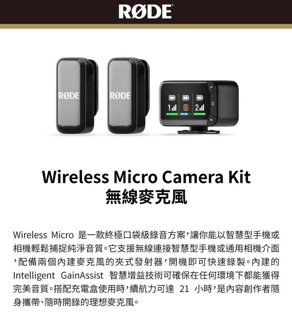 RODE Wireless Micro Camera Kit 無線麥克風 相機套組